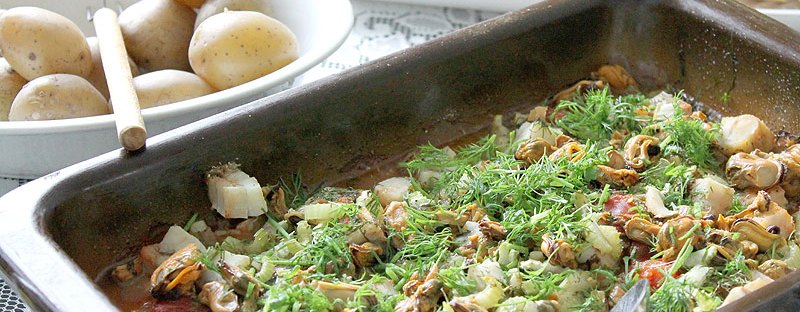 - Kaada lopuksi simpukat ja hienonnettu tilli pataruoan koristeeksi. Tarjoa ruoka lämmitetyn patongin, keitettyjen perunoiden tai riisin kera.